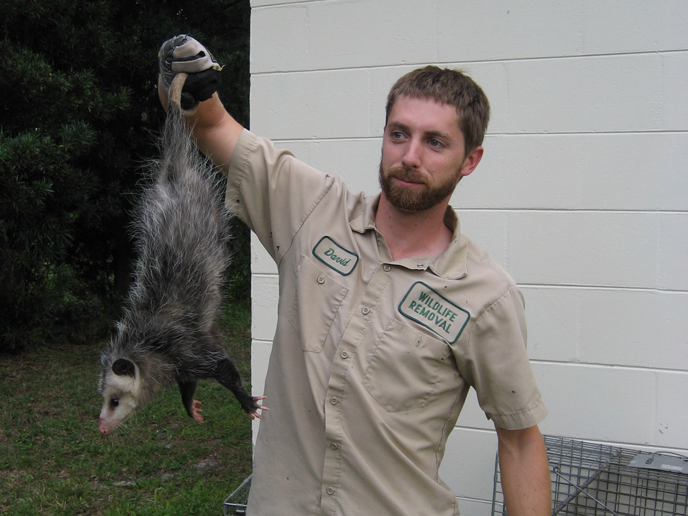 Long story short, I caught this opossum inside a house in the usual opossum hangout room – the attic. Although I had a trap with me, I did not need to use it on this one because he was sitting right in front and was not even remotely resistant when I caught hold of his tail.