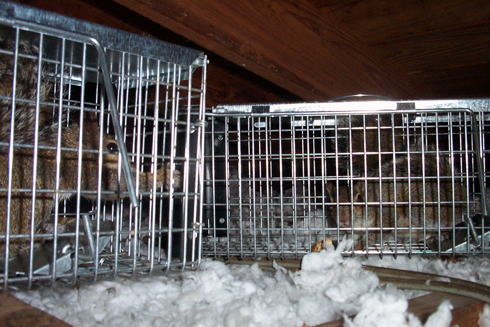 sense - the squirrels are in the attic, so that's where the traps should go. And behold! What do we see here? Squirrels caught in traps in the attic!